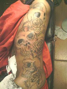 Time is Money done on the back of her shoulder... peep the coins in the hour glass